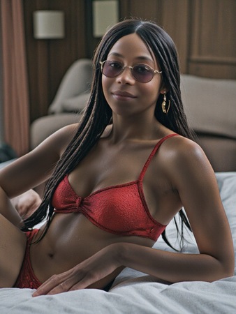 Haare:schwarz, schulterlang, Afro