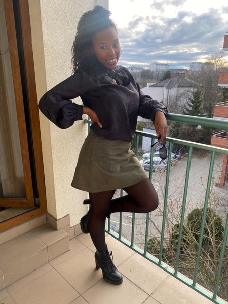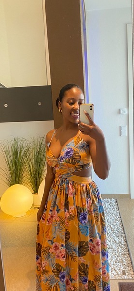| Haare: | dunkelbraun, rückenlang, Afro |